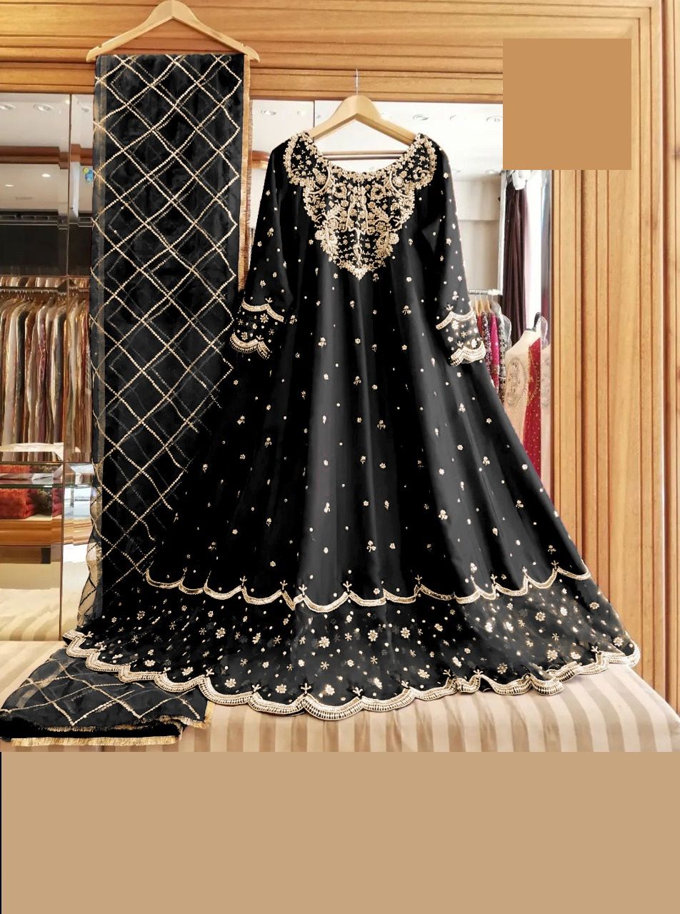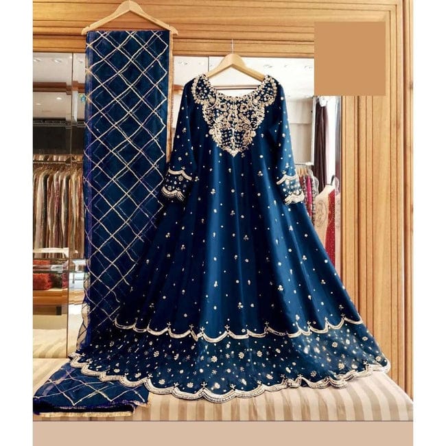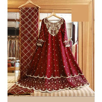 NC-31 3PCs Stitched Embroidered Long Frock - Maroon / Small